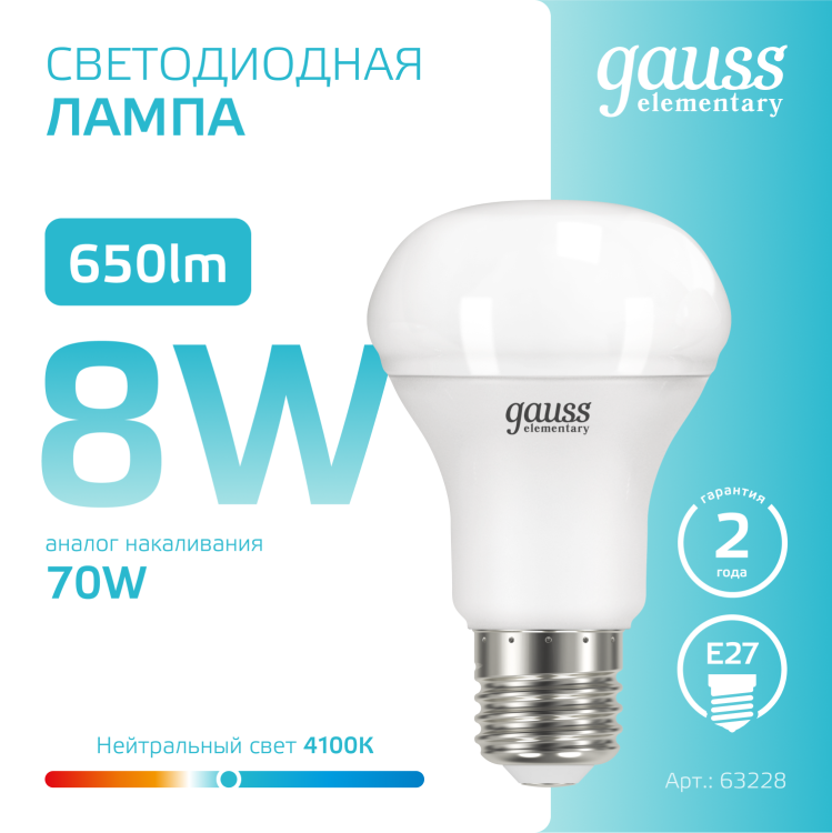 Лампа Gauss Elementary R63 8W 650lm 4100K Е27 LED 1/10/50