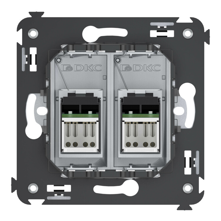 Компьюте рная розетка двойная используется для подключения компьютерной техники и соединения с патч-панелью. Компьютерная розетка предназначена для скрытого монтажа в стену. Розетка RJ-45 категории 5e – это наиболее популярная на сегодняшний день модель. Она позволяет организовать сеть с частотой 125 МГц и скоростью до 1000 Мбит/с. Материал – металл, термопласт.