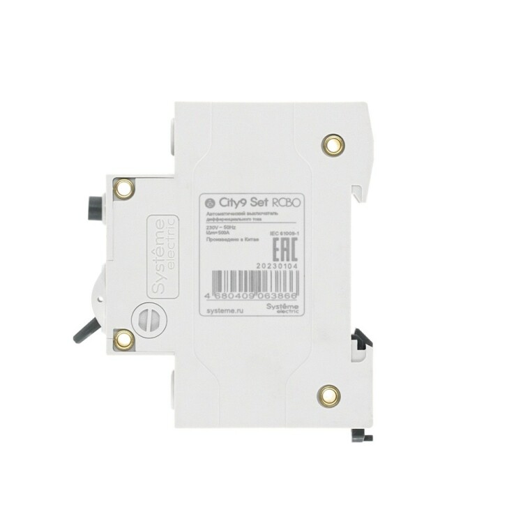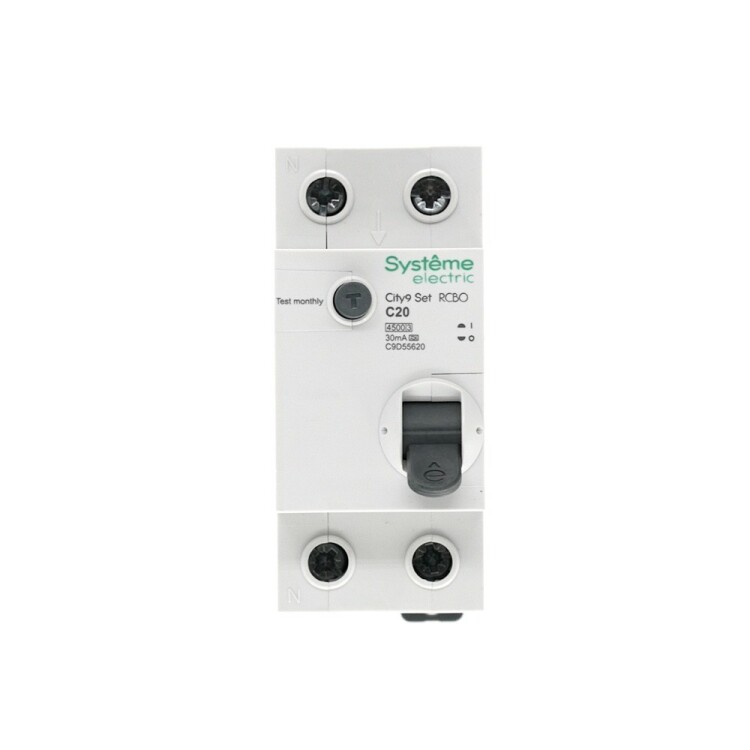 Автоматические выключатели дифференциального тока (АВДТ) серии City9 Set Systeme Electric,1P+N, номинальный ток 20 А, характерис тика С, Icn = 4.5 кА, ток утечки 30 мА, тип А. АВДТ применяется в электрических сетях напряжением 230В. Предназначен для защиты сети от перегрузок, людей от поражения электрическим током и токов короткого замыкания. Уставка по току утечки 30 мА обеспечивает гарантированную защиту людей при прямом прикосновении. Кнопка тест обеспечивает проверку работоспособности аппарата. Крепление на DIN-рейку шириной 35 мм. Безопасные клеммы.