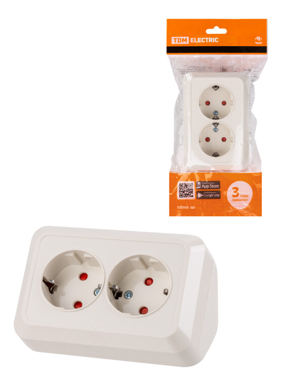 Розетка угловая двойная 2П+3 открытой установки с з/ш IP20 250В 16А сл. кость "Ладога" TDM (кр.6шт)