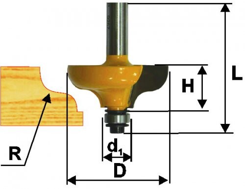 Диаметр фрезы D: 31,8 мм, Диаметр подшипника d1: 9,5 мм, Диаметр хвостовика d: 8 мм, Радиус R: 4,8 мм, Рабочая высота Н: 12,7 мм, Общая высота L: 54 мм, Артикул подшипника: 46870