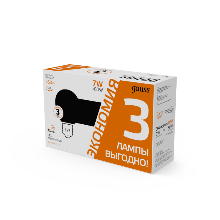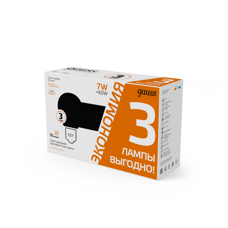 Светодиодные филаментные лампы GAUSS - это новейшие технологии в светотехнике. Лампы имеют привычный вид классических ламп накаливания, освещают пространство на 360о и дают больше света по сравнению с обычными светодиодными лампами за счет прозрачной колбы. Идеально подходят для хрустальных люстр и открытых светильников, а также для реализации дизайнерских решений, где важен вид классических ламп накаливания.
