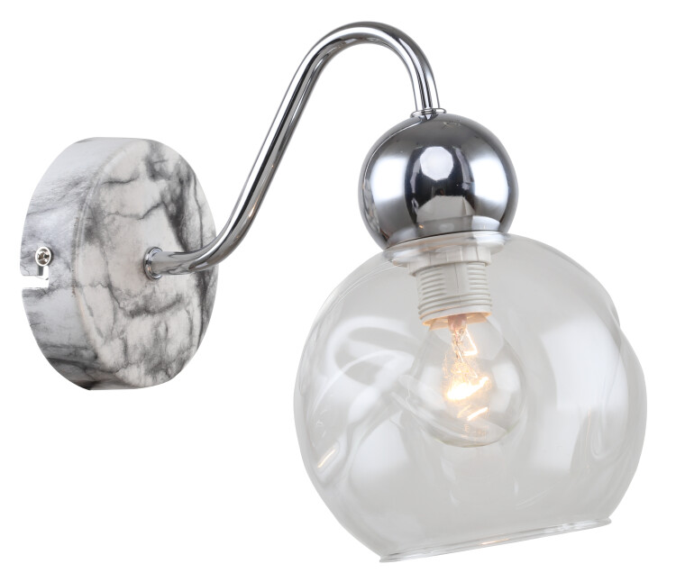 Бра настенные в стиле модерн Rivoli Dena выполнены в стиле модерн, окрашены в цвета хром и мраморный. Округлый фигурный плафон бра Dena изготовлен из прозрачного стекла. Прозрачные светильники настенные прекрасно пропускают свет. Такие настенные бра удачно купить в спальню, в гостиную, в квартиру-студию, в загородный дом. Настенные светильники-бра помогают эффективно зонировать пространство. Если в вашем доме есть бра настенные светильники Rivoli Dena, у вас всегда будет качественное дополнительное освещение для чтения, отдыха, рукоделия, общения.