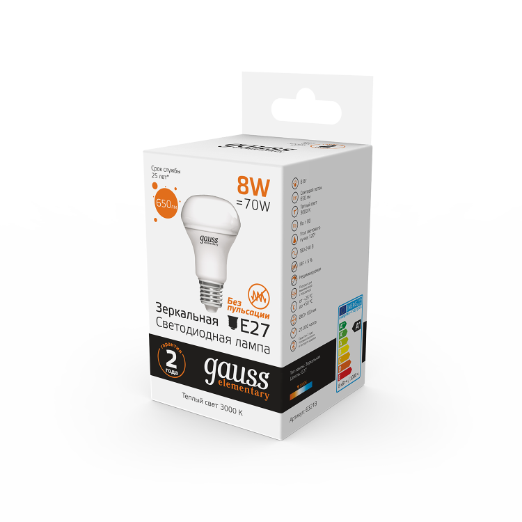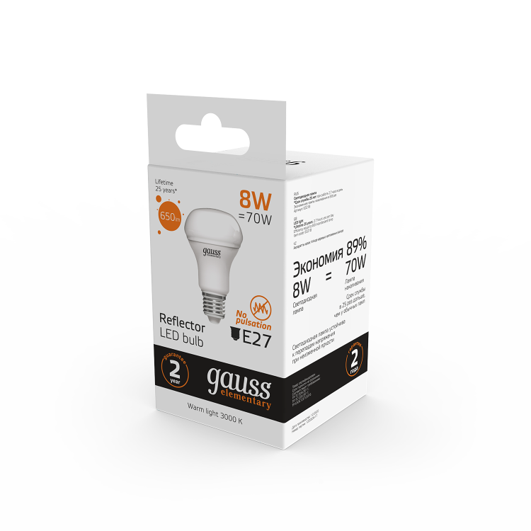 Отличная замена ламп накаливания и компактных люминесцентных ламп форм R39, R50, R63. Благодаря направленному световому пучку эти лампы помогают создать красивое, акцентное освещение. Спектр применения зеркальных ламп Gauss Elementary весьма широк: они прекрасно подойдут для любых типов потолков, для светильников направленного света и точечной подсветки.