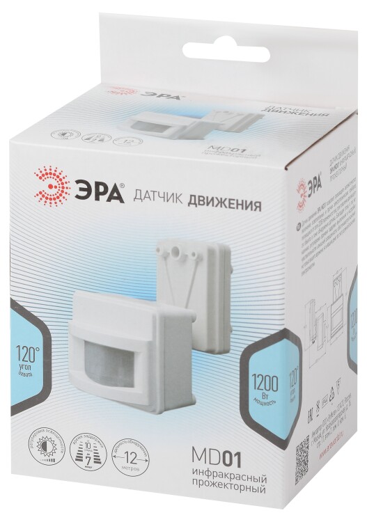 MD 01 Датчик движения ЭРА прожекторный 1200Вт, IP-44, 12м (50/400) (кр. 1шт)