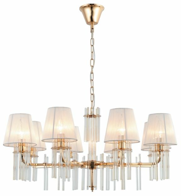 Цвет люстры Lilith - французское золото - теплый и уютный. Лаконичные формы арматуры подходят для современных интерьеров, стремящихся к минимализму. Плафоны люстры из прочной прозрачной ткани хорошо пропускают свет. Люстры на потолок Rivoli Lilith c 8 плафонами освещают площадь до 24 м2. Люстры под 8 ламп Е14 40 Вт подойдут для основного освещения гостиной, спальни, детской, кабинета, квартиры-студии. Декоративные элементы отличаются выверенной формой, простотой и высокой прозрачностью под хрусталь. Люстры в спальню Lilith Rivoli помогут создать интерьер в классическом стиле, в замковом стиле, в стиле модерн, эклектика. Идеальны для загородного дома, холла гостиниц, ресторанов.