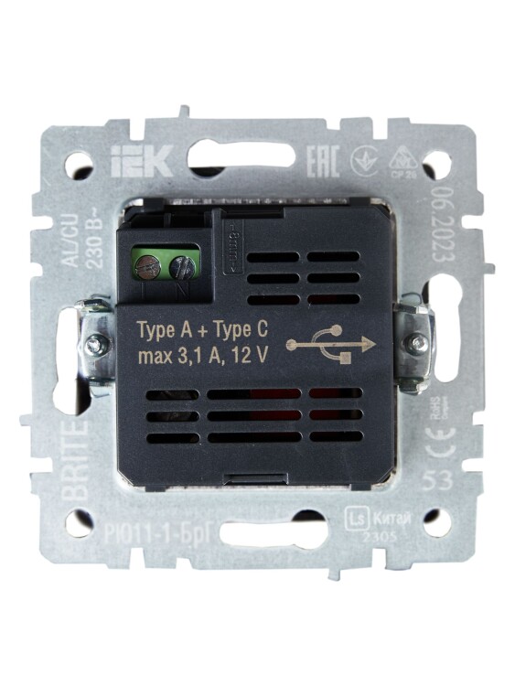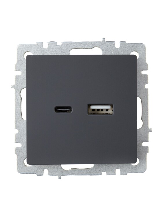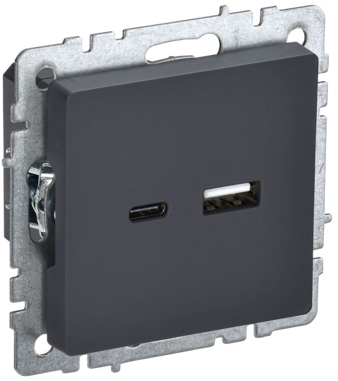 BRITE Роз. USB A+C 18Вт РЮ11-1-БрГ граф. IEK (кр.1шт)