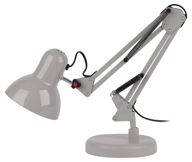 Настольный светильник ЭРА N-214-E27-40W-GY классического дизайна может использоваться с разными источниками света - лампо й накаливания, компактной люминесцентной лампой (КЛЛ) или светодиодной (LED) лампой. Выключатель на проводе. Устойчивое основание. Высота плафона регулируется двухсекционной сгибающейся стойкой, направление света - поворотом и наклоном плафона в любом направлении.