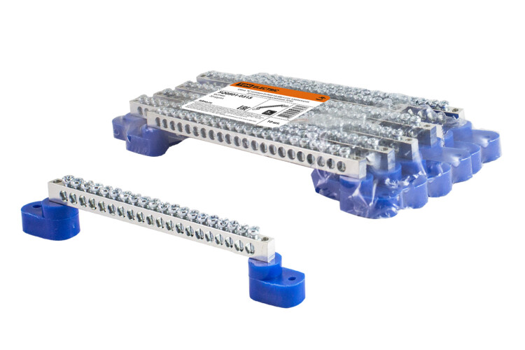 Применение:Сфера ЖКХ.Комплектация НКУ различного исполнения. Материалы:Контактная группа шин изготовлена из латуни (содержание меди не менее 57%) с никелевым покрытием.Изоляторы изготовлены из пластика, не поддерживающего горение.Прижимные винты изготовлены из никелированной стали.Преимущества:Позволяют производить коммутацию, как медных, так и алюминиевых проводников.Возможность приобретения дополнительных изоляторов (угловые и на DIN-рейку) разного цвета (желтые, зеленые, синие) для соответствия правилам ПУЭ. Назначение:Для присоединения нулевых рабочих (N) и нулевых защитных проводов (РЕ) в щитовом оборудовании. 0: