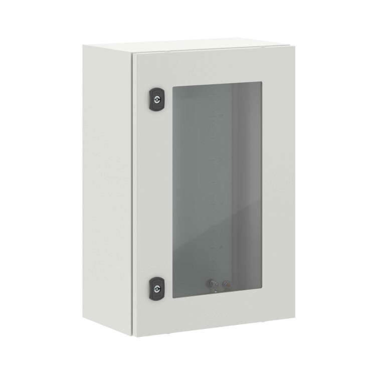 Навесные корпуса STEX предназначены для систем автоматизации и распределения электроэнергии. Корпус, дверь, фланец STEX изготавливаются из стали толщиной 1,5 мм с атмосферостойким порошковым покрытием, цвет RAL7035. Монтажная плата - из оцинкованной стали 1,8 мм. Безопасное закаленное стекло толщиной 5 мм. Корпуса выполнены по технологии сварки из единого листа металла, что обеспечивает высокую нагрузочную способность и защиту от вибраций. Степень защиты IP66, ударопрочность IK10, сейсмостойкость 9 баллов по шкале MSK-64, климатическое исполнение УХЛ1, ОМ2, ОМ3, группа горючести Г1. Комплект поставки: корпус, дверь реверсивная, монтажная плата, дверные рейки, поворотный замок 2 шт., сплошной фланец для ввода кабеля 1 шт., комплект заземления с проводами заземления. Габариты 600x400x250 (ШхВхГ) мм.
