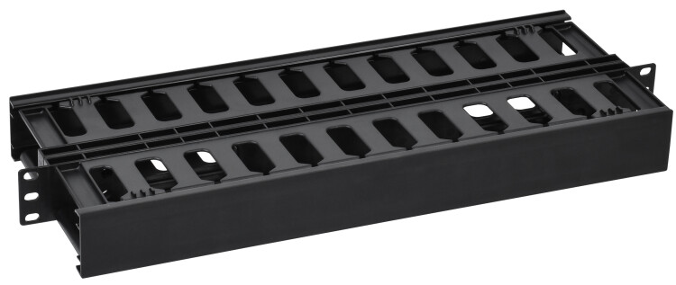 Кабельный горизонтальный пластиковый организатор 19" в двойном корпусе с плоской крышкой высотой 1U предназначен для горизонтальной организации кабелей в 19-дюймовых шкафах и стойках.