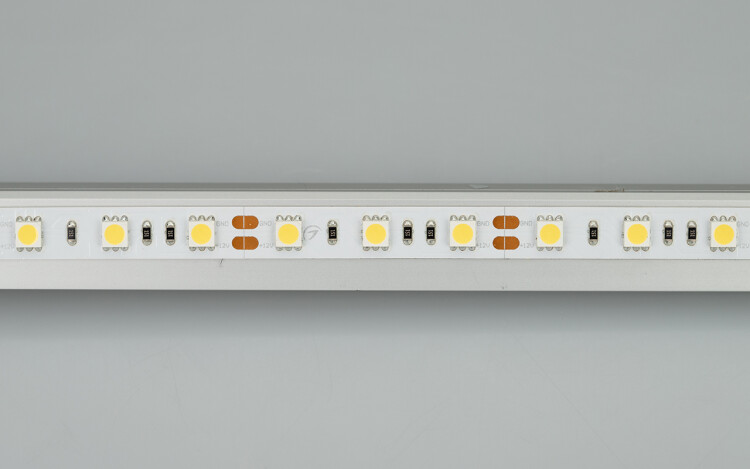 Гибкая лента LUX, светодиоды smd 5060, 60шт/м (300шт на 5м), белая плата 10мм, скотч 3М. Цвет БЕЛЫЙ 5800-6500K. Питание 12V, мощность 14.4 Вт/м (72 Вт на 5м), угол 120°, цветопередача CRI>85. Размеры 5000х10x2.2мм. Мин.отрезок 50мм, 3 светодиода. Цена за 1м. Кратность заказа поставщику: 5 м.