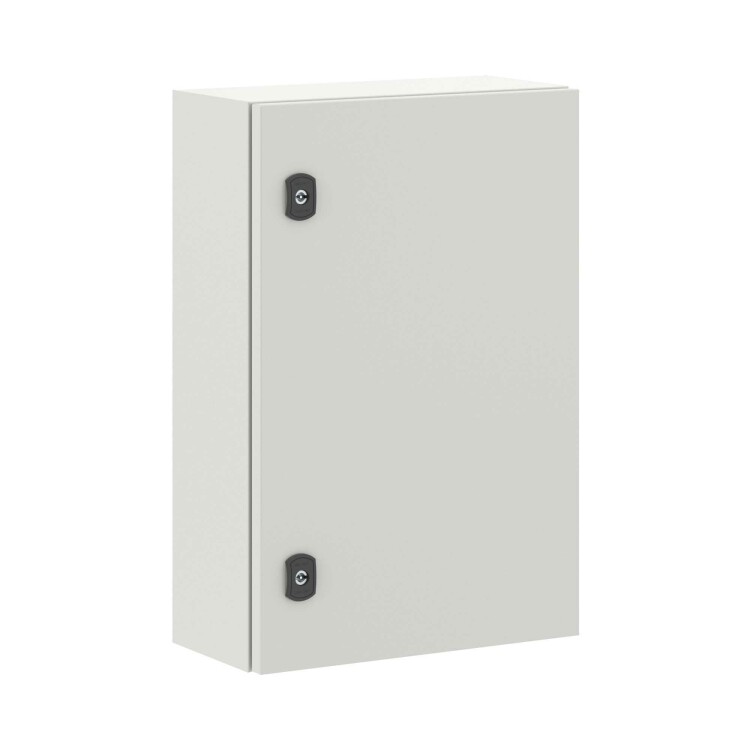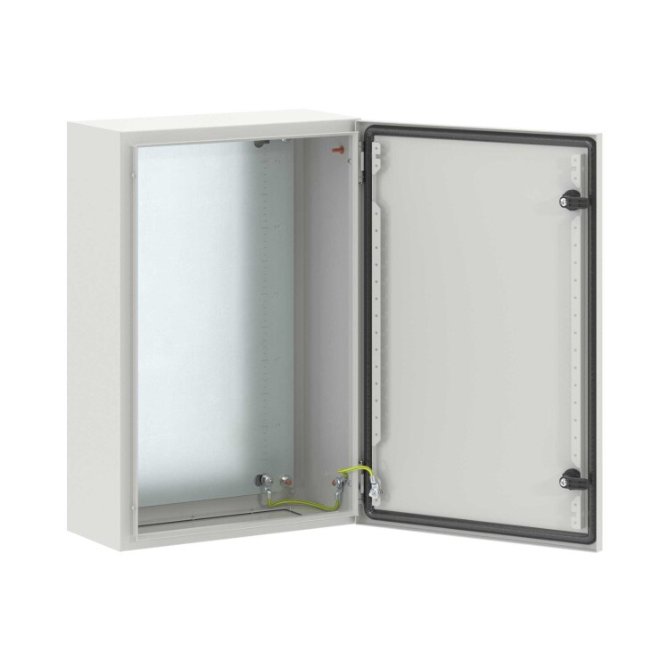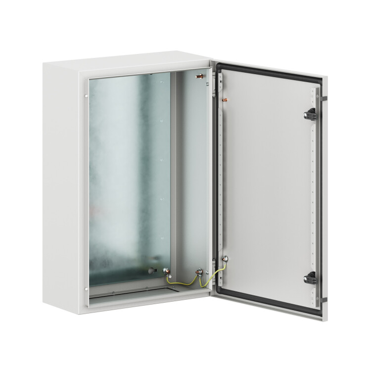 Навесные корпуса STE предназначены для систем автоматизации и распределения электроэнергии. Корпус, дверь, фланец STE изготавливаются из стали толщиной 1,5 мм с атмосферостойким порошковым покрытием, цвет RAL7035. Монтажная плата - из оцинкованной стали 1,8 мм. Корпуса выполнены по технологии сварки из единого листа металла, что обеспечивает высокую нагрузочную способность и защиту от вибраций. Степень защиты IP66, ударопрочность IK10, сейсмостойкость 9 баллов по шкале MSK-64, климатическое исполнение УХЛ1, ОМ2, ОМ3, группа горючести Г1. Комплект поставки: корпус, дверь реверсивная, монтажная плата, дверные рейки, поворотный замок 2 шт., сплошной фланец для ввода кабеля 1 шт., комплект заземления с проводами заземления. Габариты 600x400x200 (ШхВхГ) мм