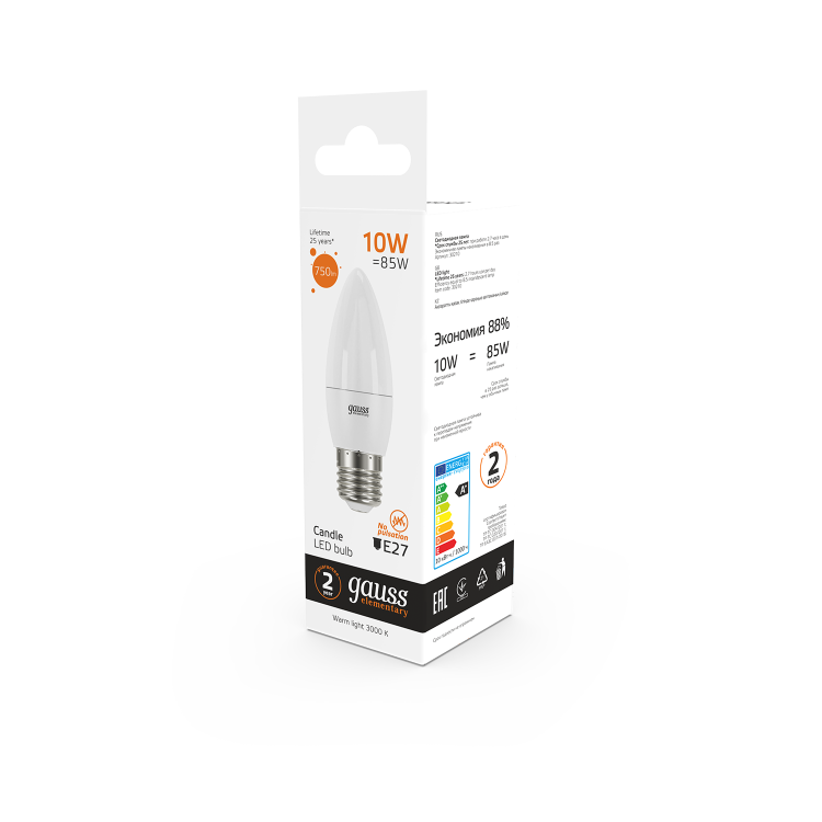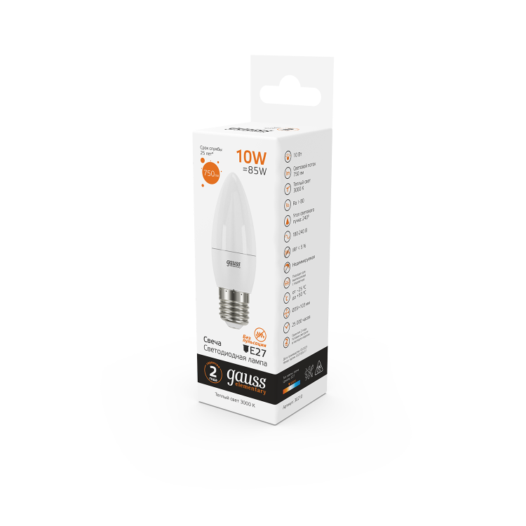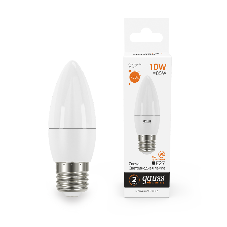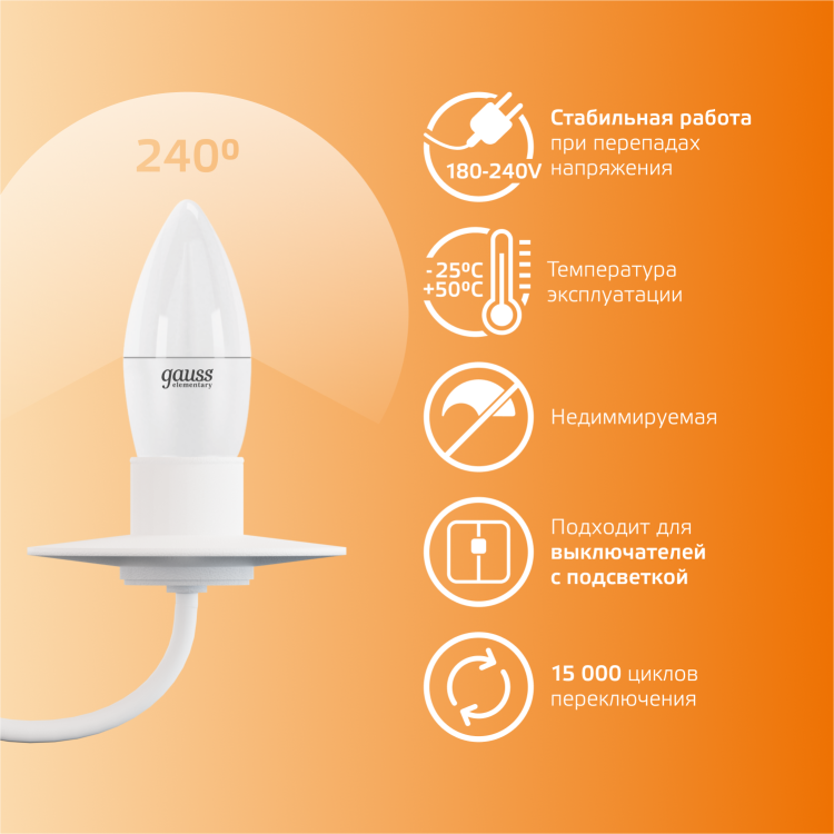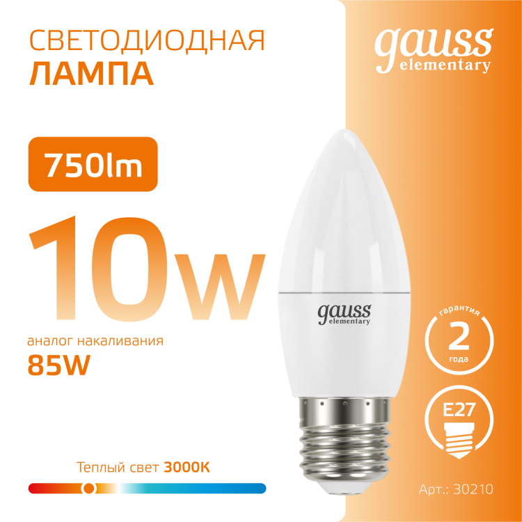 Светодиодные лампы Gauss Elementary Candle созданы в форме свечи. Лампы подойдут как для домашнего, так и для коммерческого использования. Такой тип освещения прекрасно смотрится в светильниках без плафонов или устанавливается в люстры и бра. Модель обладает широким диапазоном цветовых температур и мощностей, что поможет создать атмосферу тепла и уюта или концент рации. Равномерный спектр света создает зрительный комфорт в любом помещении. Данный тип освещения от Gauss обеспечивают стабильную работу в течение всего срока службы.