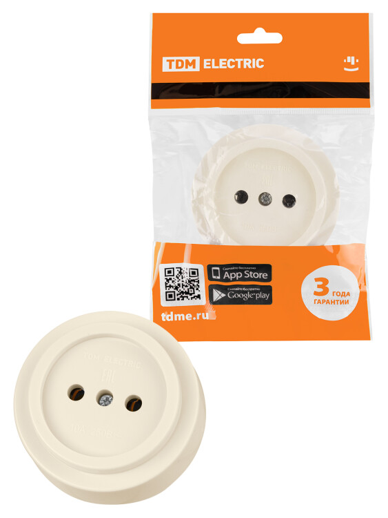 Розетка 2П открытой установки IP20 10А сл. кость "Ретро" TDM (кр.20шт)