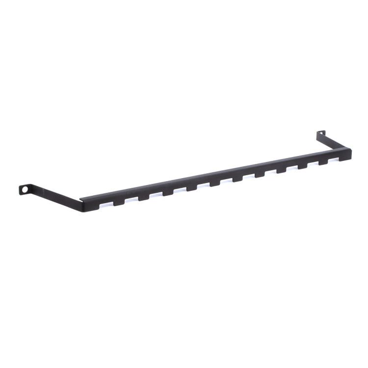 Компактный горизонтальный кабельный организатор 0U предназначен для укладки излишков длины коммутационных или электрических кабелей, применяемых в IT-корпусах. Устанавливается вместе с коммутационной панелю на нижнюю или верхнюю пару крепежных винтов, не занимая юнитовое пространство шкафа. Органайзер имеет отверстия шириной 20 мм, что позволяет фиксировать кабели хомутами на тканевой основе (типа Velcro) шириной до 20 мм. Полимерно-порошковая технология окрашивания обеспечивает прочноcть лакокрасочного покрытия и его устойчивость к сколам и царапинам. В комплект поставки входят крепежные элементы (винт М6х14, шайба, закладная гайка). Цвет - чёрный (RAL9005)