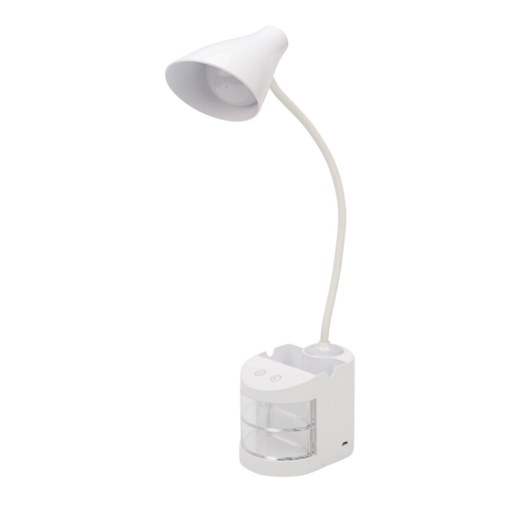 Настольный светильник REXANT Click Shift используется для освещения рабочего места.Современный дизайн придаст изысканность любому интерьеру, а высокое качество светодиодного источника света без пульсаций, позволяют использовать светильник как в офисе, так и дома.Функциональный ночник с мягким светом позволяет использовать светильник в качестве деликатной мягкой подсветки.Матовый рассеиватель обладает антиослепляющим эффектом и уменьшает габаритную яркость, создавая равномерный и мягкий свет.Стильный и вместительный органайзер позволяет размещать письменные и подручные принадлежности.Светильник оснащен аккумулятором, благодаря которому может работать до 3 часов при отсутствии питания от сети.Заряжается от источника питания 5 В постоянного тока через универсальный порт USB (USB-кабель вxодит в комплект).Теxнические xарактеристики:Тип источника света: LEDСветовой поток: 525 ЛмМощность светильника: 6 ВтЭнергоэффективность: 87.5 Лм/ВтИндекс цветопередачи (CRI): >80Коррелированная цветовая температура основного света (в сфере): 4000 ККоррелированная цветовая температура ночника: 2700 КПеременный/постоянный ток (AC/DC): DCДиммирование: встроенный сенсорный диммер 3 ступениНапряжение питания: 5 ВКласс защиты от поражения током: IIIГабаритные размеры: 420x120x80 ммЭлектромагнитная совместимость: ТР ТС 020/2011Климатическое исполнение: УХЛ4Температурный режим: +5...+40 °СЦвет корпуса: белыйКоэффициент пульсации: