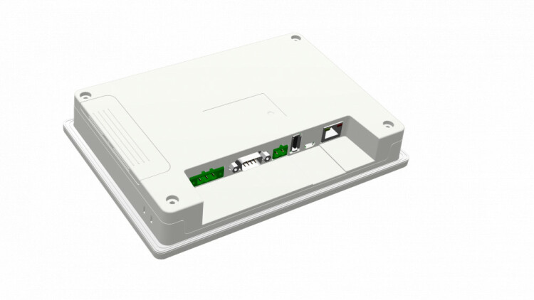 7", 16:9, 1024*600, 24-бит цвет, 24 В постоянного тока, 3 последовательных порта (COM1/COM3: RS232/RS485/RS422 на одном разъеме DB9; COM2: RS485 на 2-pin винтовом разъеме), 1 порт Ethernet, пластиковый корпус, усовершенствованные программные функции