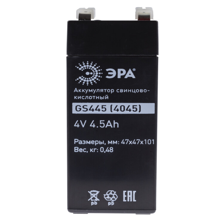 ЭРА Аккумулятор GS445 (Cвинцово-кислотный 4V 4,5) (25/900) (кр. 1шт)