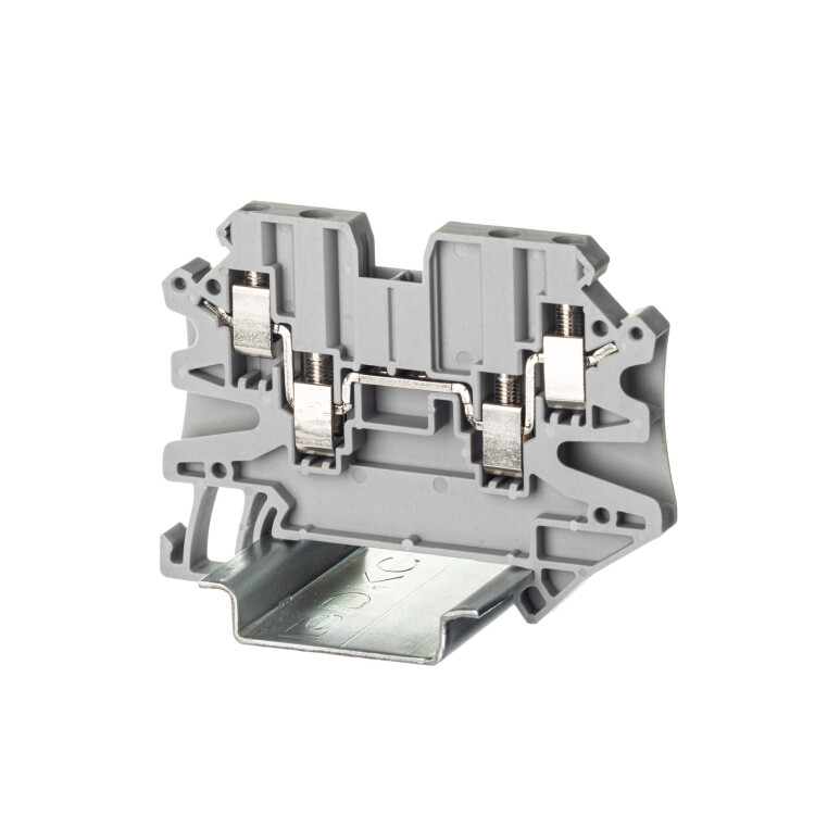 Проходная клемма с винтовым зажимом предназначена для соединения четырех проводников. Монтаж на DIN-рейку OMEGA. Температура эксплуатации от -40 до +105°C. Корпус выполнен из ПА 6.6 с классом горючести V0 UL-94.