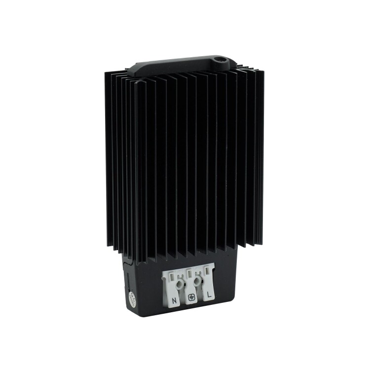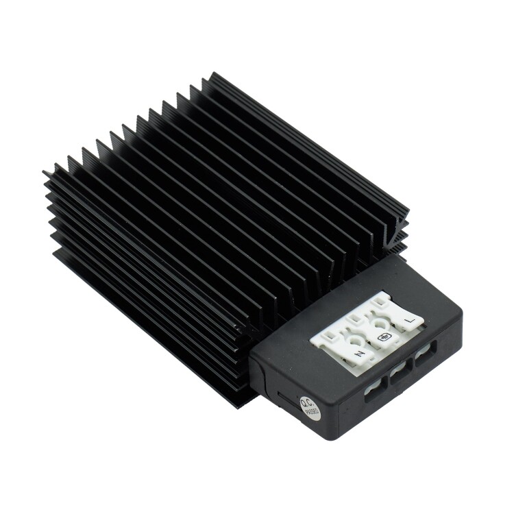 Обогреватель в черном алюминиевом корпусе мощностью 75 Вт предназначен для поддержания необходимой температуры внутри электротехнического шкафа. Работает от напряжения 110…240 В (AC/DC) с частотой 50/60 Гц. Обогреватель изготовлен из высококачественных материалов, обеспечивающих надежную работу. Степень защиты – IP20. Благодаря компактным размерам 50x70x120 мм этот обогреватель легко устанавливается в ограниченном пространстве. Рабочий диапазон температур от –45 до +70 ˚C делает его подходящим для использования в суровых условиях эксплуатации. Обогреватель оснащен нагревательным элементом РТС-типа, что обеспечивает стабильную и долговечную работу.