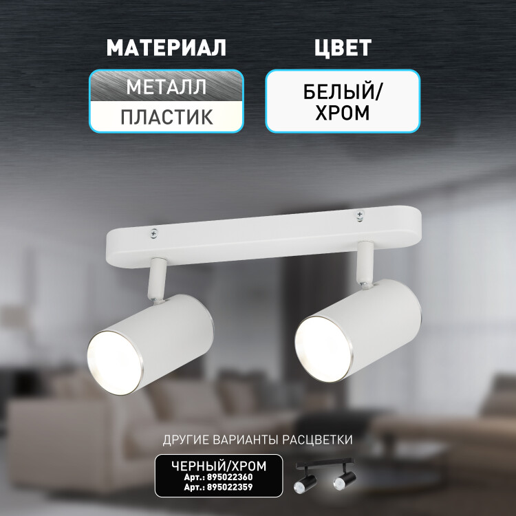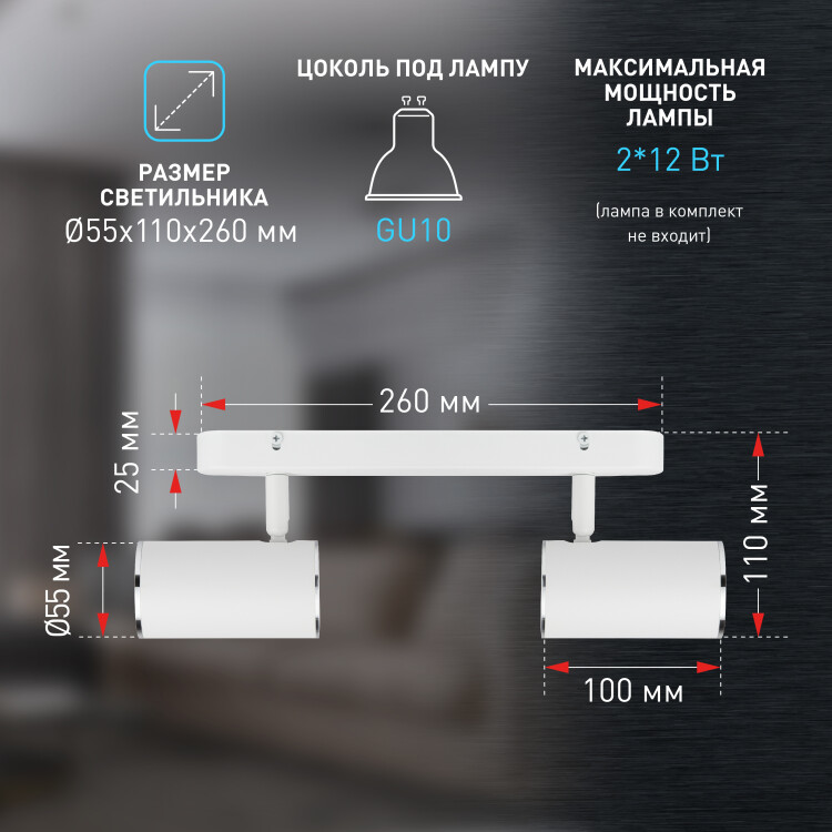 Светильник OL35-2 WH применяется для акцентного освещения и светового зонирования помещений. Может так же использоваться как основной источник света. Универсальный дизайн и небольшой размер светильника позволяют устанавливать его в помещениях любых типов и предназначений. Цоколь для источника света GU10, напряжение питания ~230В 50/60Гц, материал алюминий, железо, цвет светильника белый, хром, размер D55*100*2мм, максимальная мощность лампы 2*12Вт, степень защиты IP20