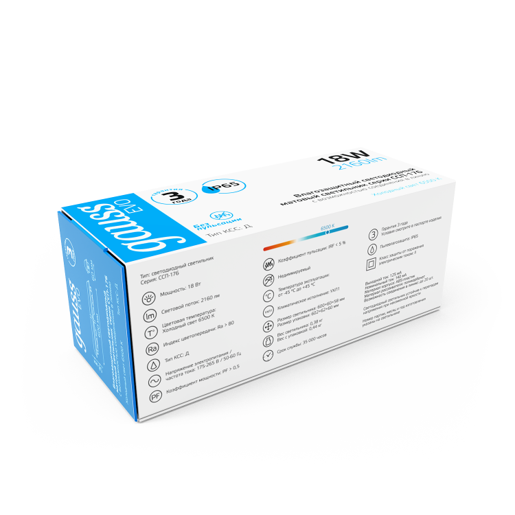 Профессиональный светодиодный влагозащищенный светильник Gauss ССП-176 EVO предназначен для общего освещения наземных/подземных проходов, проездов, подъездов, лестничных клеток, входных групп, балконов, технических и подсобных помещений, в том числе с повышенными требования к пылевлагозащите до IP65. В ассортименте также представлены модели с возможностью соединения в линию, инфракрасным датчиком движения и блоком аварийного питания, способный поддерживать автономную работу в течение одного часа.