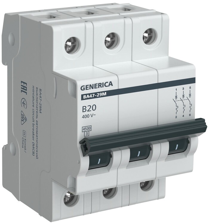 Авт. выкл. ВА47-29М 3P 20А 4,5кА B GENERICA (кр.48шт)