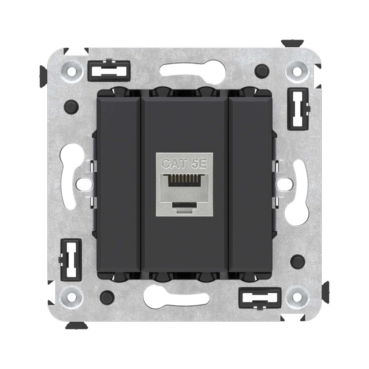Компью терная розетка одинарная экранированная без шторки используется для подключения компьютерной техники и соединения с патч-панелью. Компьютерная розетка предназначена для скрытого монтажа в стену, поставляется в комплекте с суппортом. Розетка RJ-45 категории 5e – это наиболее популярная на сегодняшний день модель. Она позволяет организовать сеть с частотой 125 МГц и скоростью до 1000 Мбит/с. Материал – металл, термопласт. Пластиковые детали устройства имеют оттенок "Черный матовый".