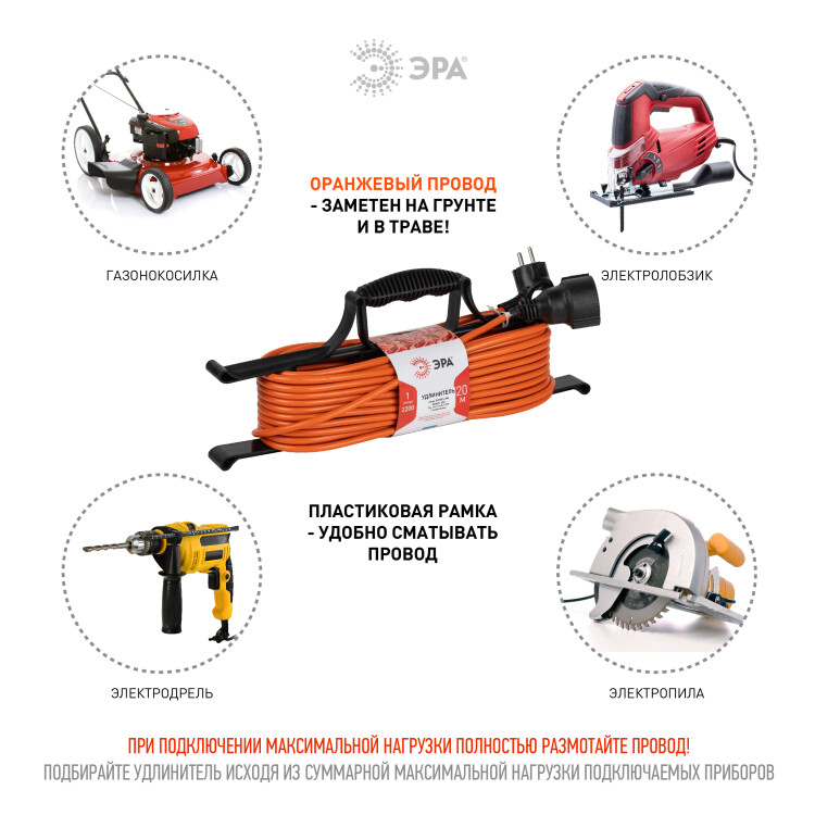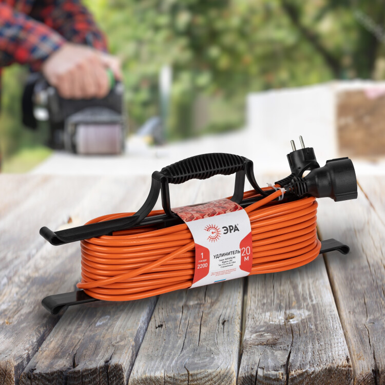 Удлинитель силовой на рамке UFх-1e-3x1-20m с заземлением ПВС, 3x1м2, 1 розетка, 20м. Мощность 10A/ 2200Вт. Удобен при работе с приборами находящимися удаленно от стационарной розетки. Например газонокосилки, электрические пилы, риммеры или электродрели.