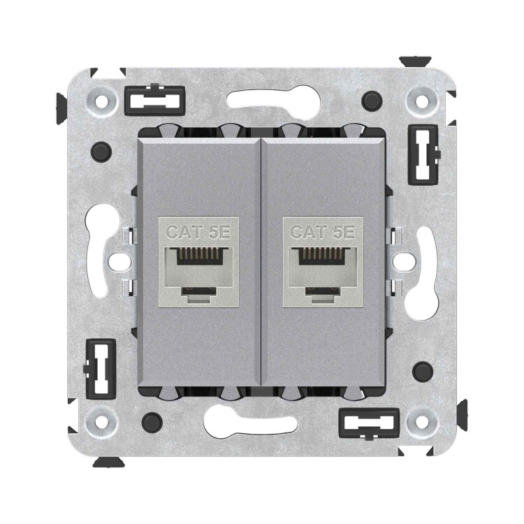 Компью терная розетка двойная экранированная без шторки используется для подключения компьютерной техники и соединения с патч-панелью. Компьютерная розетка предназначена для скрытого монтажа в стену, поставляется в комплекте с суппортом. Розетка RJ-45 категории 5e – это наиболее популярная на сегодняшний день модель. Она позволяет организовать сеть с частотой 125 МГц и скоростью до 1000 Мбит/с. Материал – металл, термопласт. Пластиковые детали устройства имеют оттенок "Закаленная сталь".