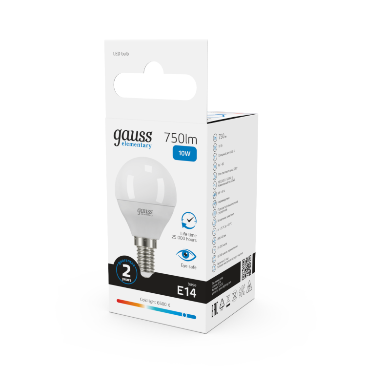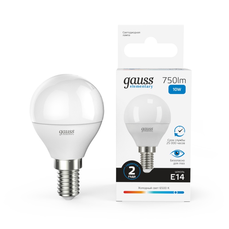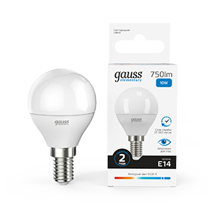 Лампа Gauss Elementary Шар 10W 750lm 6500K Е14 LED 1/10/100