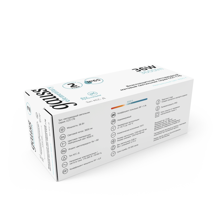 Профессиональный светодиодный влагозащищенный светильник Gauss ССП-176 Elementary предназначен для общего освещения наземных/подземных проходов, проездов, подъездов, лестничных клеток, входных групп, балконов, технических и подсобных помещений, в том числе с повышенными требования к пылевлагозащите до IP65. В ассортименте также представлены модели с возможностью соединения в линию, инфракрасным датчиком движения и блоком аварийного питания, способный поддерживать автономную работу в течение одного часа.