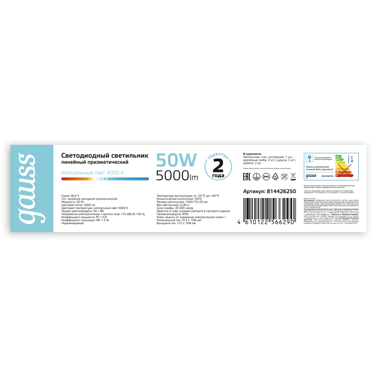 Св-к светодиодный призма Gauss IP40 1492*75*25мм 50W 5000lm 4000K WLF-2 сталь 1/20
