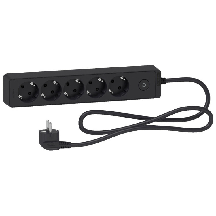 UNICA EXTEND удлинитель 5 розеток 2К+З, кабель 1,5м, ЧЁРНЫЙ (кр.1шт) Отгрузка из Москвы