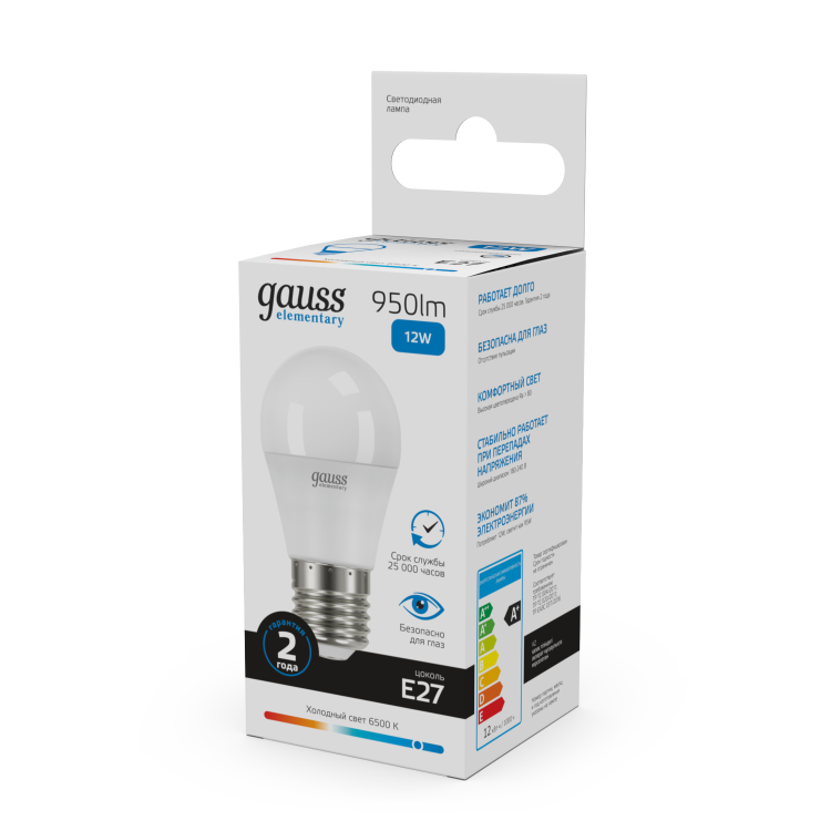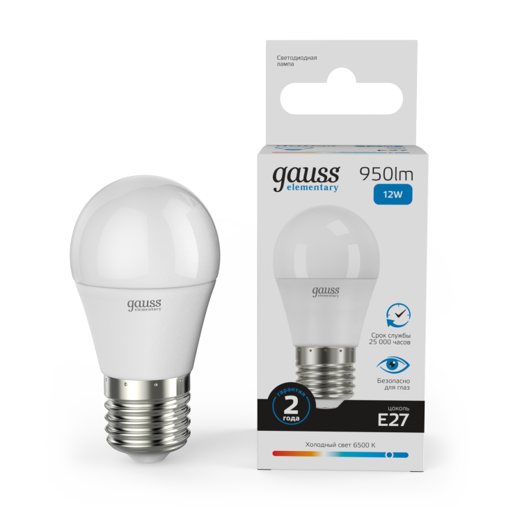 Лампы Gauss Elementary являются универсальными источниками света для любого типа помещений. Матовая колба ламп равномерно рассеивает свет и подходит для открытых светильников и прозрачных плафонов. За счет высокого индекса цветопередачи пространство будет наполнено приятным, мягкий светом, не слепящим глаза. В случае перебоя напряжений лампы не потеряют ярко сть и не будут мерцать.