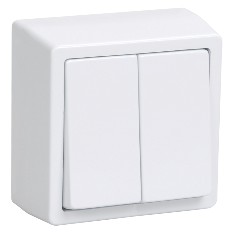ВС20-2-0-ББ Выключатель двухклавишный для открытой установки "БРИКС" цвет: белый (кр.10шт) нМ