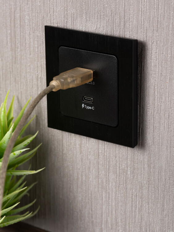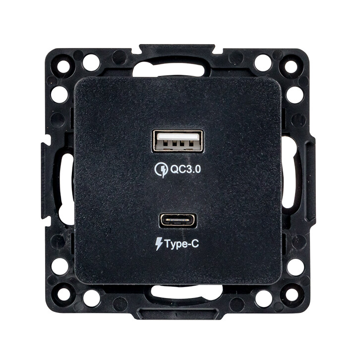 Стокгольм Механизм Розетки с 2USB type-A + type-C черный EKF PROxima (кр. 1шт)