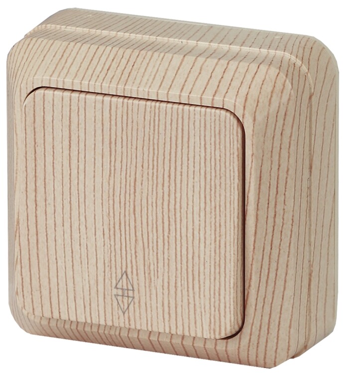 Переключатель Intro Quadro 2-103-11 одноклавишный 10А-250В, IP20, ОУ, сосна (кр. 1шт)