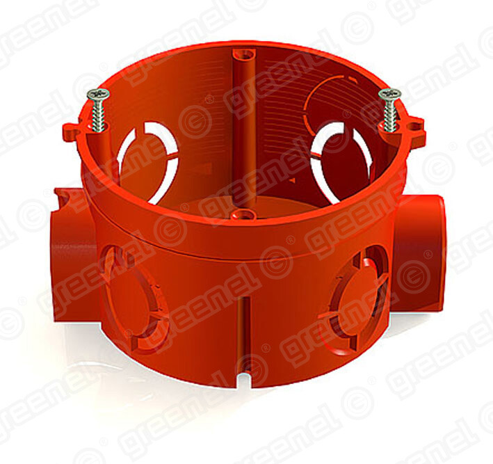 Коробка установочная для кирпичных стен с саморезами D68мм*42мм (300шт) КРАСНАЯ, ТМ GREENEL (кр.300шт)