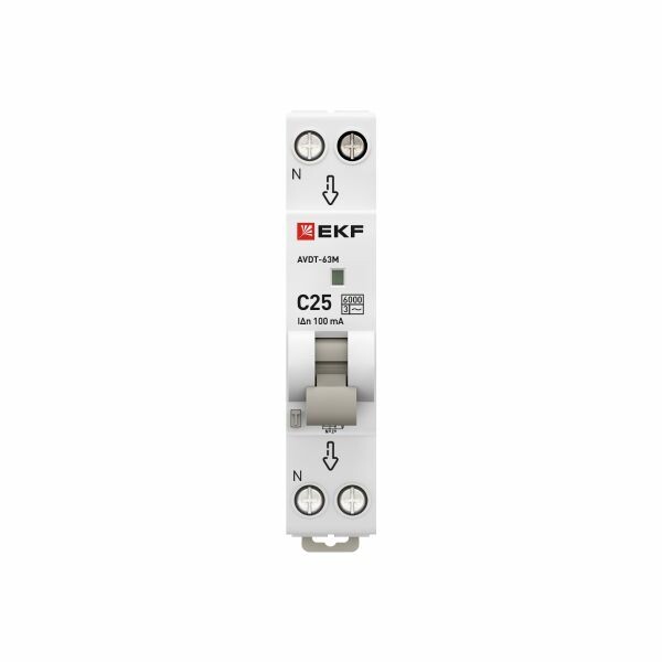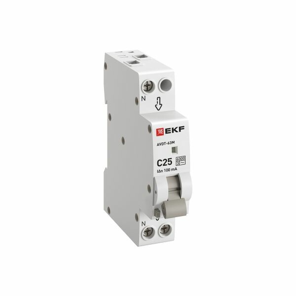 Автоматический выключатель дифференциального тока АВДТ-63 EKF PROxima представляет аппарат, сочетающий функции автоматического выключателя с электромеханическим или электронным УЗО. При обнаружении автоматическим выключателем в защищаемом участке сети тока утечки (повреждения) на землю или сверхтока (тока перегрузки иликороткого замыкания) происходит срабатывание устройства, приводящее к отключению защищаемой сети. Возможна коммутация алюминиевым и медным проводником.Автоматический выключатель дифференциального тока малогабаритный АВДТ-63М EKF PROxima представляет аппарат, сочетающий функции автоматического выключателя с электронным УЗО типа АС в компактном корпусе шириной один модуль. При обнаружении автоматическим выключателем на защищаемом участке сети тока утечки (повреждения) на землю или сверхтока (тока перегрузки или короткого замыкания) происходит срабатывание устройства, приводящее к отключению защищаемой сети. Особое отличие дифференциальных автоматических выключателей EKF с электронным УЗО – в наличии блока защиты от перенапряжения. Возможна коммутация алюминиевым и медным проводом.