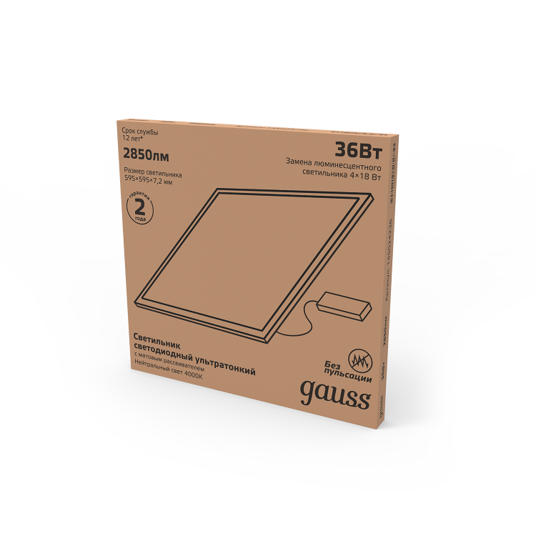 Светильник офисный Gauss 36W это ультратонкая современная панель, которая пришла на смену люминисцентным лампам. У него крепкий ультратонкий алюминиевый корпус, с уникальной системой монтажа: встраиваемый в потолок Армстронг или любой подвесной. Яркость светового потока 2850lm, равномерность свечения обеспечивается LED драйвером, который идет в комплекте. Мат ериал рассеивателя опаловый полистирол позволяет равномерно распределить свечение без слепящего эффекта. Применяется для основного освещения в оффисных зданиях, спортивный и торговых центрах, холлах, ресторанах, аэропортах.