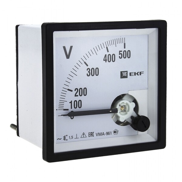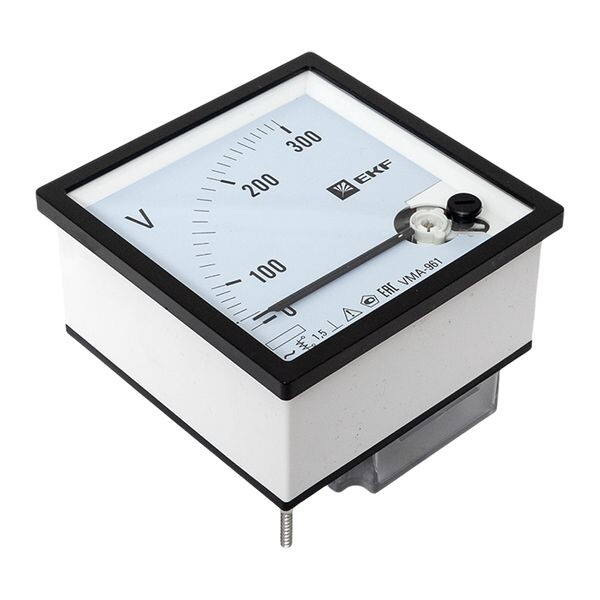 Аналоговые электроизмерительные вольтметры торговой марки EKF™ предназначены для измерения напряжения в электрических цепях переменного тока. Приборы применяются для работы в закрытых помещениях, в электрощитовом оборудовании, в электроустановках промышленных предприятий, жилых, общественных зданий и сооружений. Вольтметры устанавливаются на панель щита (квадратный и круглый вырезы). Размеры лицевых панелей приборов: 72 х 72, 80 х 80 и 96 х 96. Вольтметры могут быть только прямого подключения, диапазон измерений зависит выбранной модификации вольтметра. Класс точности Аналоговых вольтметров составляет 1.5 для квадратного и 2.5 для кр углого вырезов соответственно.