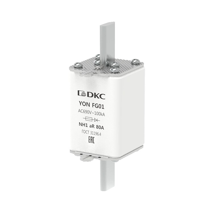 Предохранитель YON ножевого типа FG1 с одинарной индикацией 80А предназначен для защиты полупроводников и электронных компонентов электроустановки от короткого замыкания в цепях переменного тока напряжением до 690В (характеристика aR).