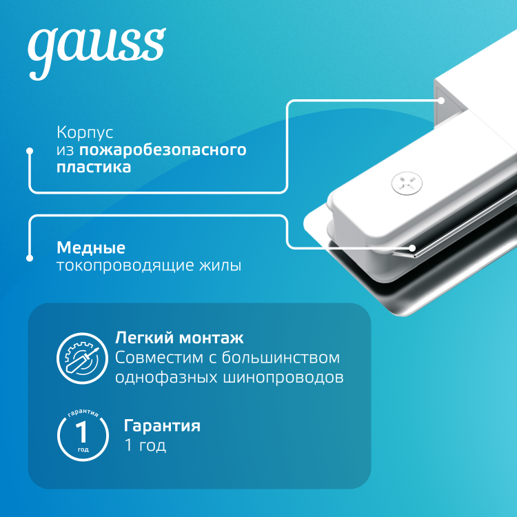 Коннектор разработан специально для соединения трековых шинопроводов с электрической сетью. Выполнен в стильном белом цвете, что позволяет ему гармонично сочетаться с интерьером любого дизайна.