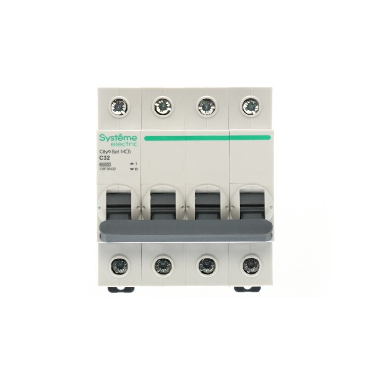 Автоматический выключатель серии City9 Set Systeme Electric, 4-полюсный, номинальный ток 32 А, характеристика С, Icn = 6 кА. Применя ется в электрических сетях напряжением 400 В. Предназначен для защиты от перегрузок и токов короткого замыкания. Оснащен механизмом «мгновенной коммутации». Ударопрочный корпус из специального пластика с 6 металлическими заклепками. Безопасные клеммы исключают попадание кабелей в заклеммное пространство.