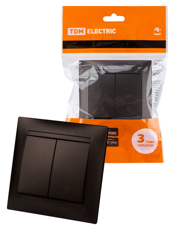 Выключатель на 2 направления 2 кл. 10А шоколад "Лама" TDM (кр.10шт)