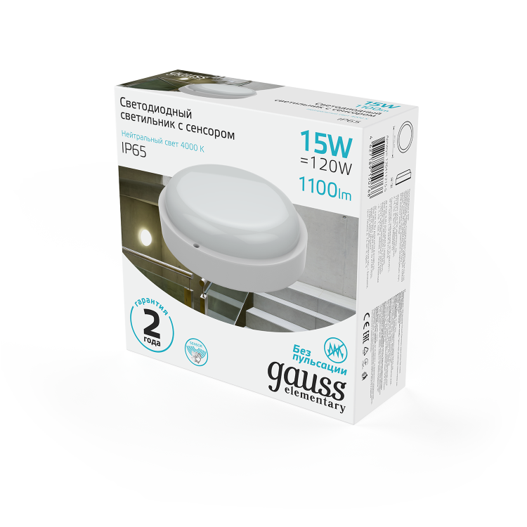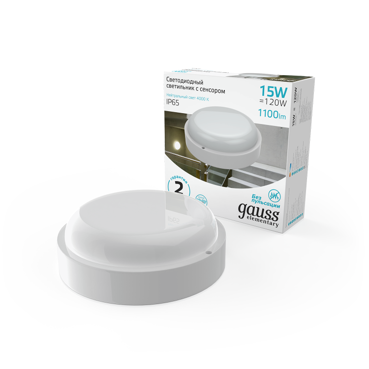Светодиодные светильники Gauss Elementary предназначены для общего освещения наземных/подземных проходов, проездов, подъездов, лестничных клеток, входных групп, балконов, технических и подсобных помещений, в том числе, с повышенными требованиями к пылевлагозащите до IP65. В данной серии используется драйвер, обеспечивающий стабильную работу светильника при напряжении сети от 160В до 260В. Доступны модели с микроволновым датчиком движения.