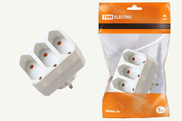 Блок на 3 гнезда 2П 2,5 А 250 B под плоскую вилку белый TDM (кр.1шт)