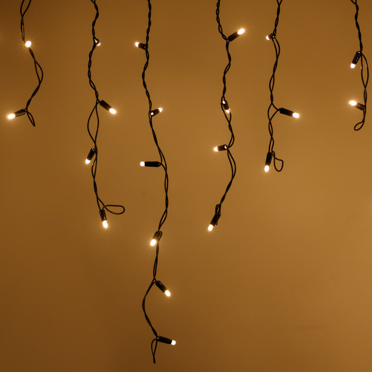 Светодиодная бахр ома Pro. Размер 5600 мм (длина 5600 мм, по длине 48 нитей высотой 200/900 мм). Количество светодиодов 240 шт размером 7 мм. Основной цвет свечения ТЕПЛЫЙ БЕЛЫЙ (3000 К), эффект мерцания редких точек БЕЛЫЙ (6000К) с резким световым рисунком (прозрачная вогнутая линза), соотношение светодиодов: 198 теплых постоянного свечения / 42 белых с мерцанием. Эффект частого мерцания. Провод черный, каучук. Питание 230 В, Мощность 15 Вт, защита IP65, применение на улице под навесом. Аксессуары для подключения приобретаются отдельно.
